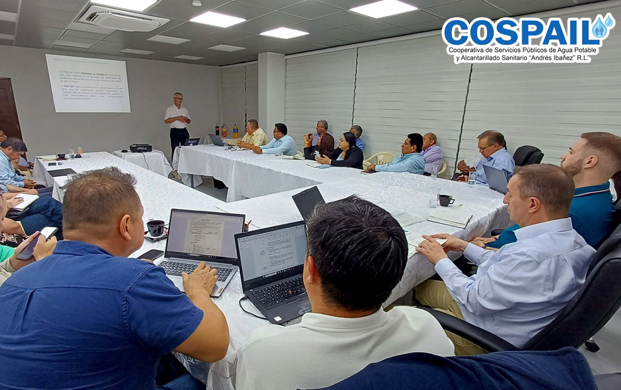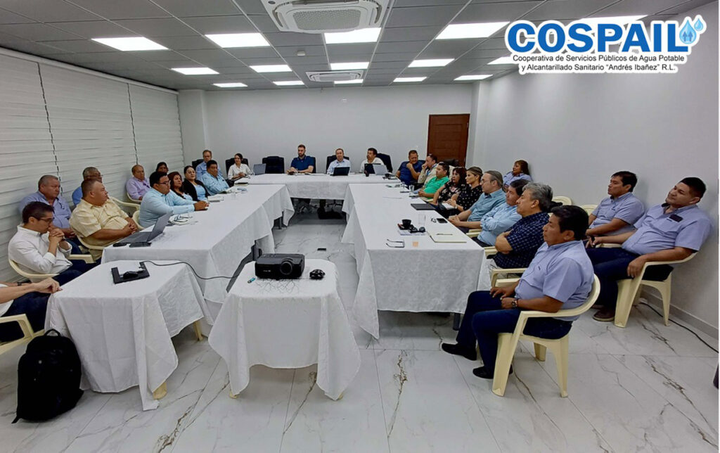 Durante el encuentro, se presentaron los avances alcanzados y se abordó la segunda convocatoria para la licitación del Proyecto de Mejoramiento del Sistema de Agua Potable de COSPAIL, con el objetivo de mejorar la calidad y el servicio de agua potable.