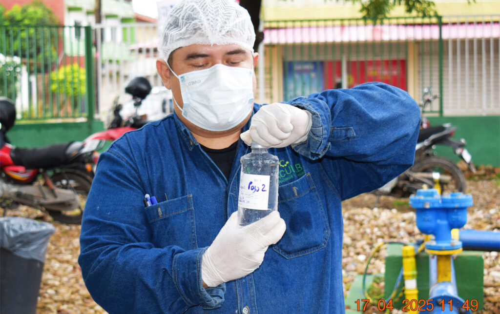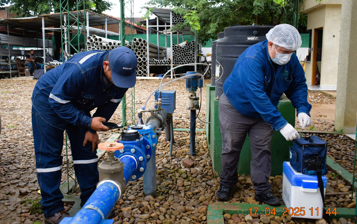 La jornada de hoy, realizamos el control mínimo, básico y complementario de calidad del agua potable en nuestras estaciones de bombeo 2- 4 – 5 – 6 – 7 – 8 – 9 – 10 y 11 realizadas semestralmente, en cumplimiento a la Norma Boliviana NB 512.
