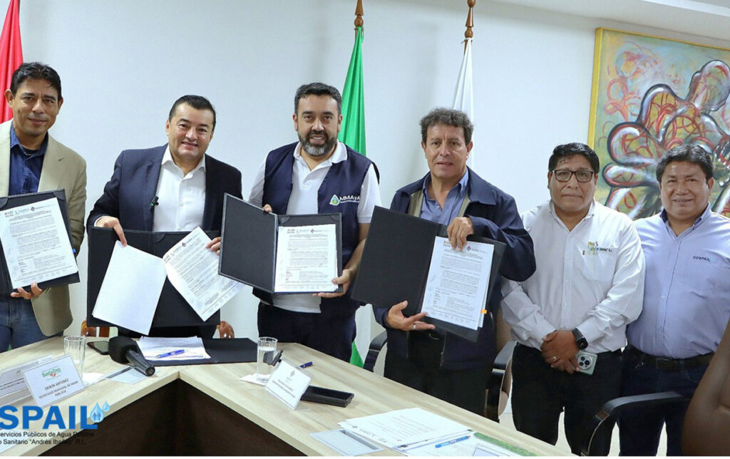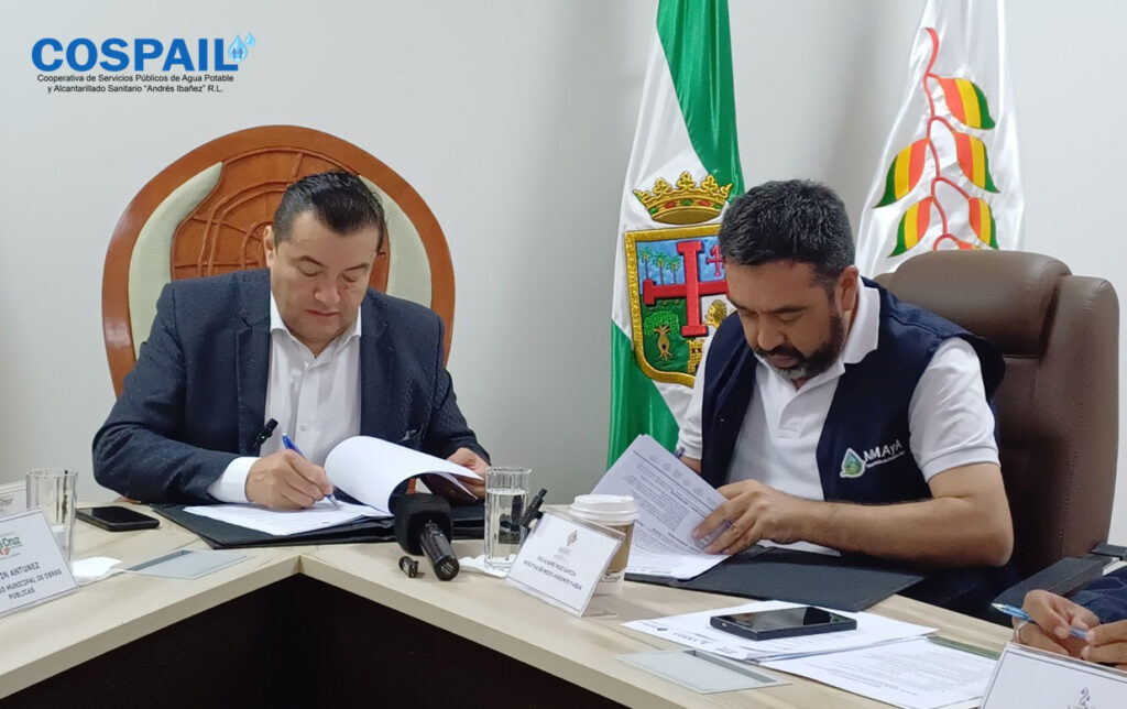 El acto de firma contó además con la participación del Ministerio de Medio Ambiente y Agua (MMAyA), la Secretaría Municipal de Obras Públicas del GAMSC, y las cooperativas beneficiarias del programa: COSPAIL R.L. y COSCHAL R.L.